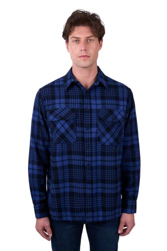 Premium yarn dyed check with thermal quality brushing, 2-Pocket long sleeve shirt, one with pen holder, long shirt tail, back pleat for comfort and movement, removable collar stays.