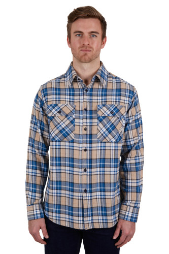 Premium yarn dyed check with thermal quality brushing, countryman pockets with pen holder, long shirt tail, back pleat for comfort and movement, removable collar stays